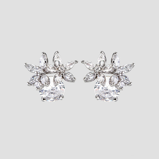 Zircon 925 Sterling Silver Flower Stud Earrings