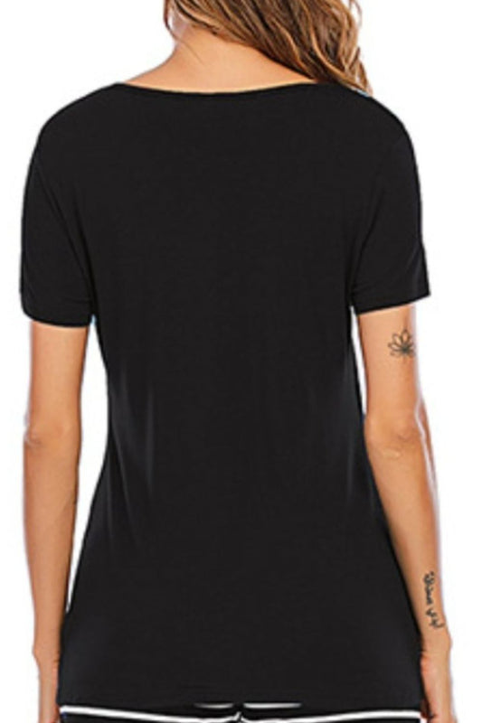 V-Neck Short Sleeve Top and Drawstring Shorts Lounge Set
