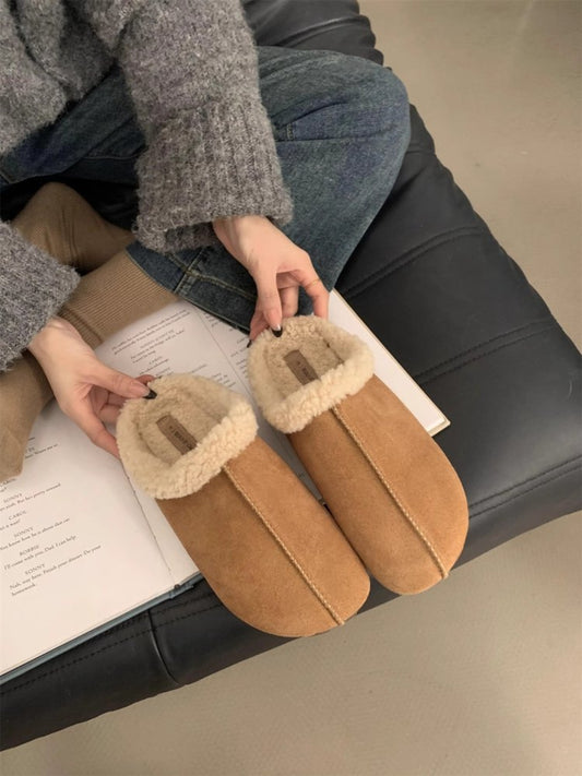 Thermal Fuzzy Round Toe Flat Slippers