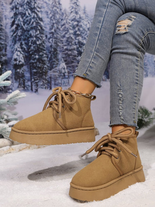 Lace Up Round Neck Platform Suede Boots