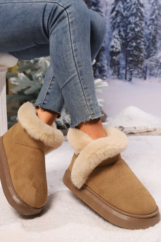 Faux Fur Round Toe Platform Boots