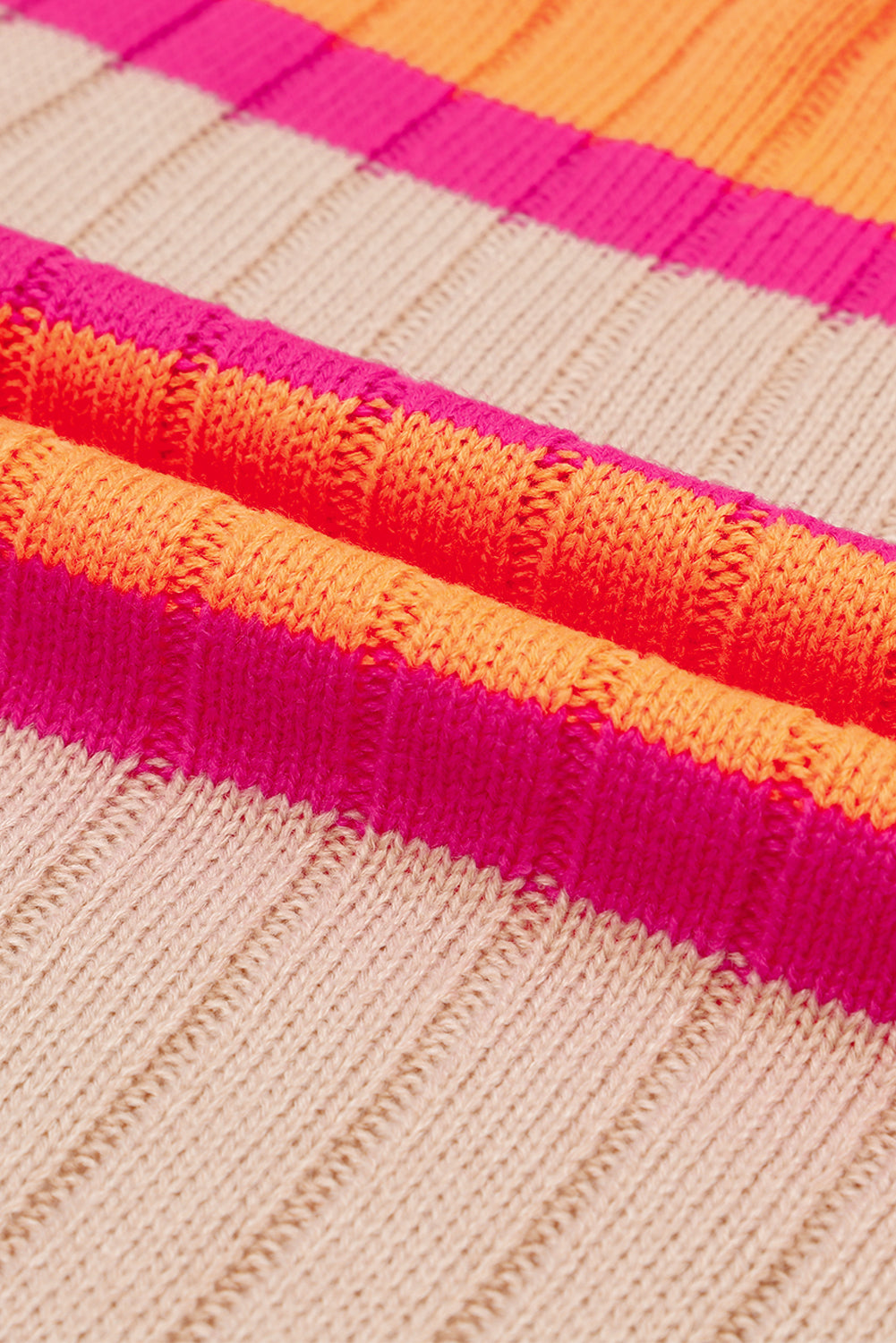 Contrast Striped Drop Shoulder Open Front Cardigan