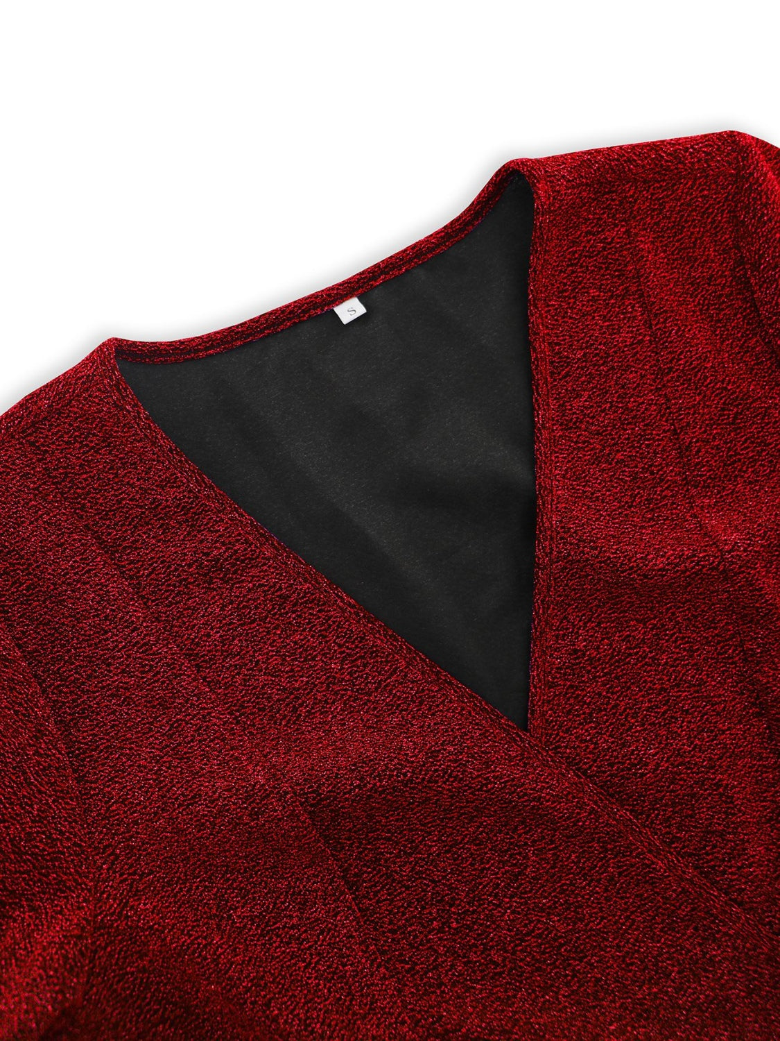 Ruched Heathered Surplice Long Sleeve Mini Dress