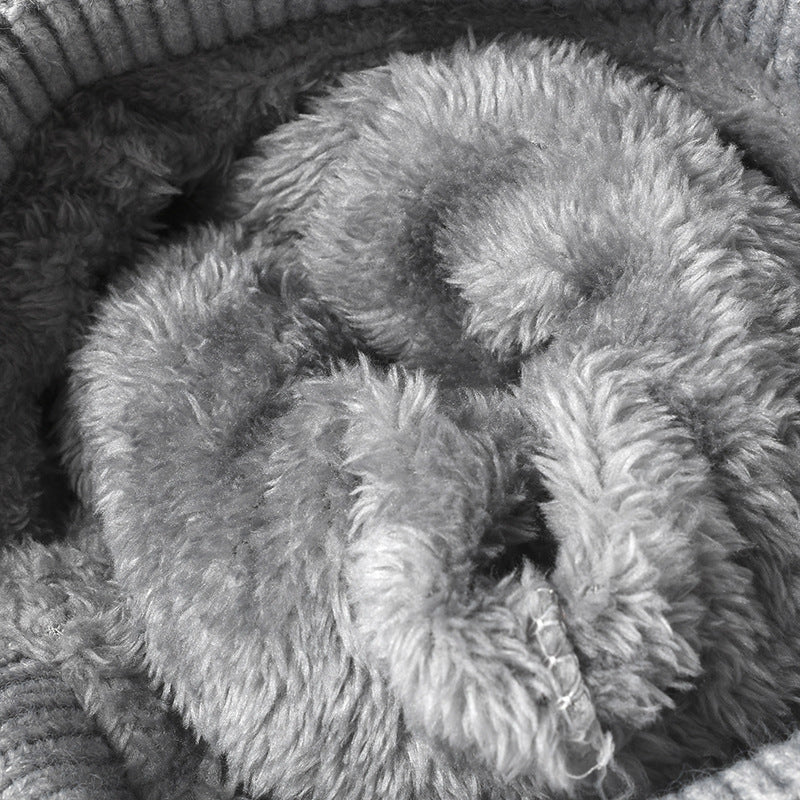 Striped Contrast Knit Hat with Pom-pom