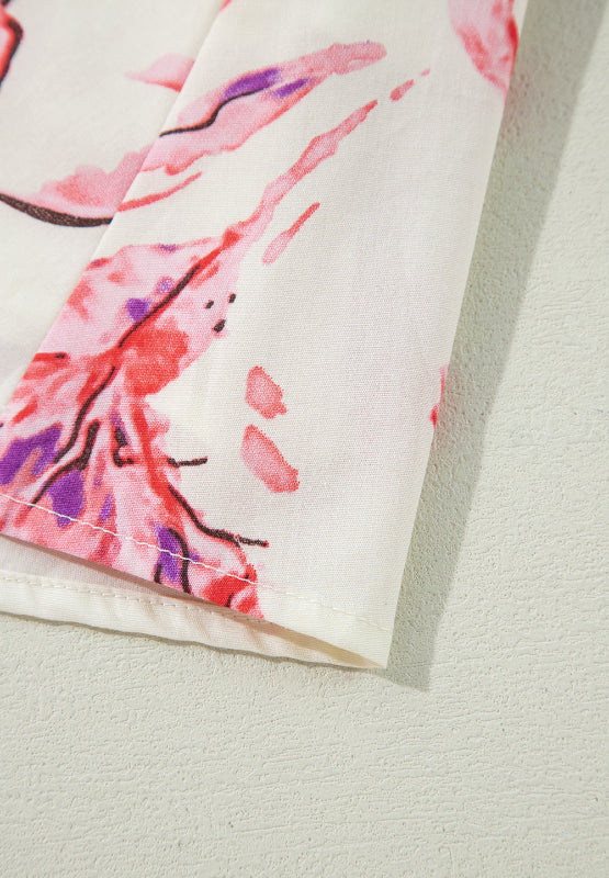 Tied Flower Printed Three-Quarter Sleeve Dress