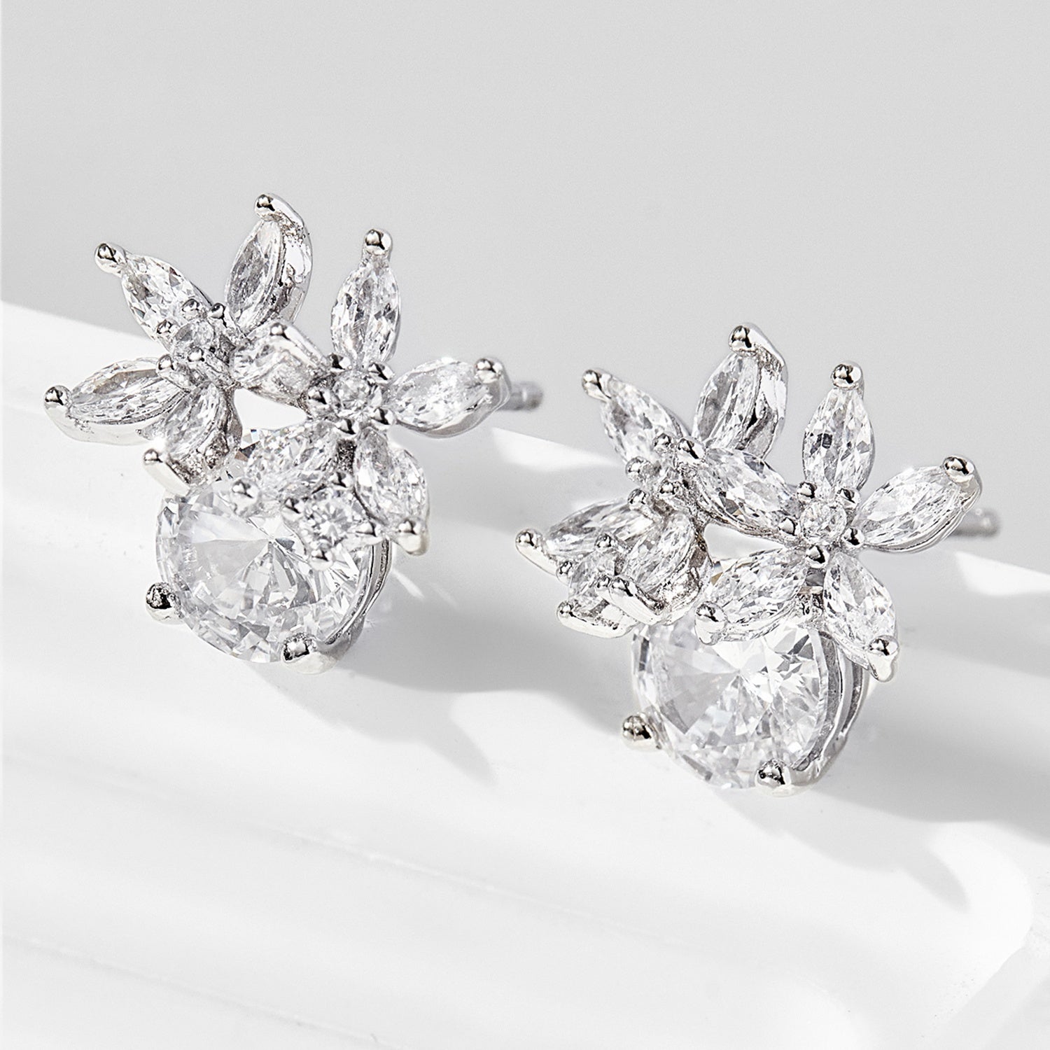 Zircon 925 Sterling Silver Flower Stud Earrings